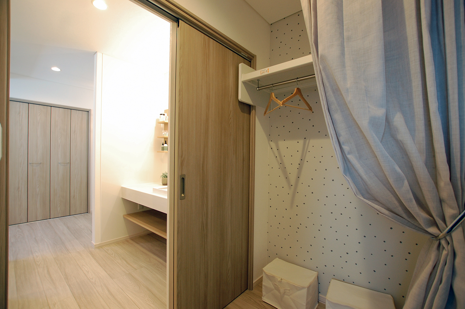 洗面横にあるから、着替えやタオル収納にも便利!家族みんなで使えるクローゼット