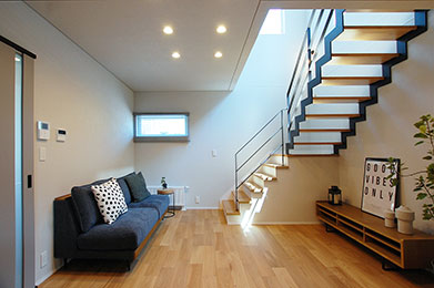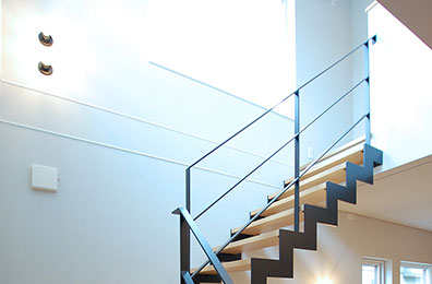 吹き抜けと階段配置で、
