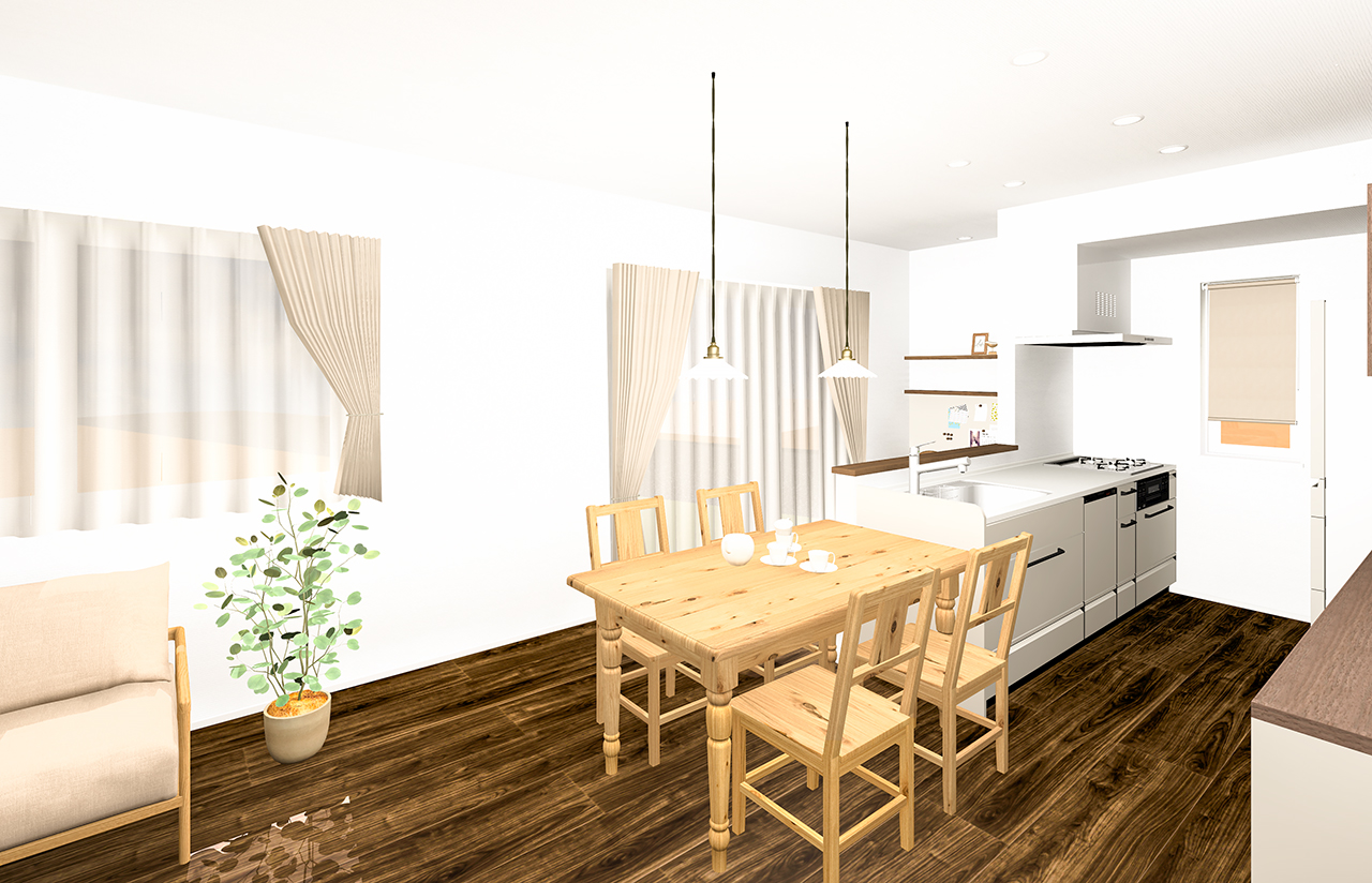 ナチュラルカントリーな家具が映える、明るい空間設計です。