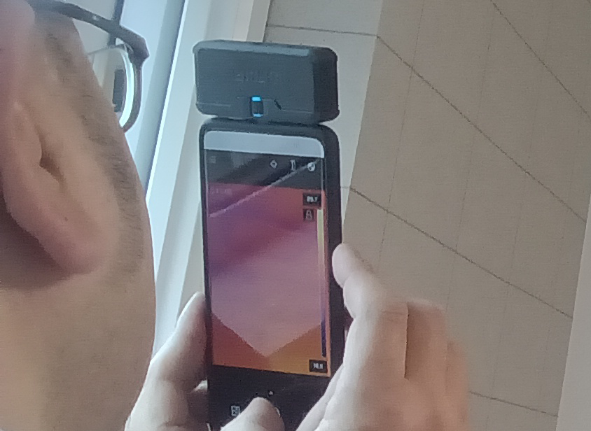 点検口を閉めた状態: すぐに画面が「赤(暖かさ)」に安定。