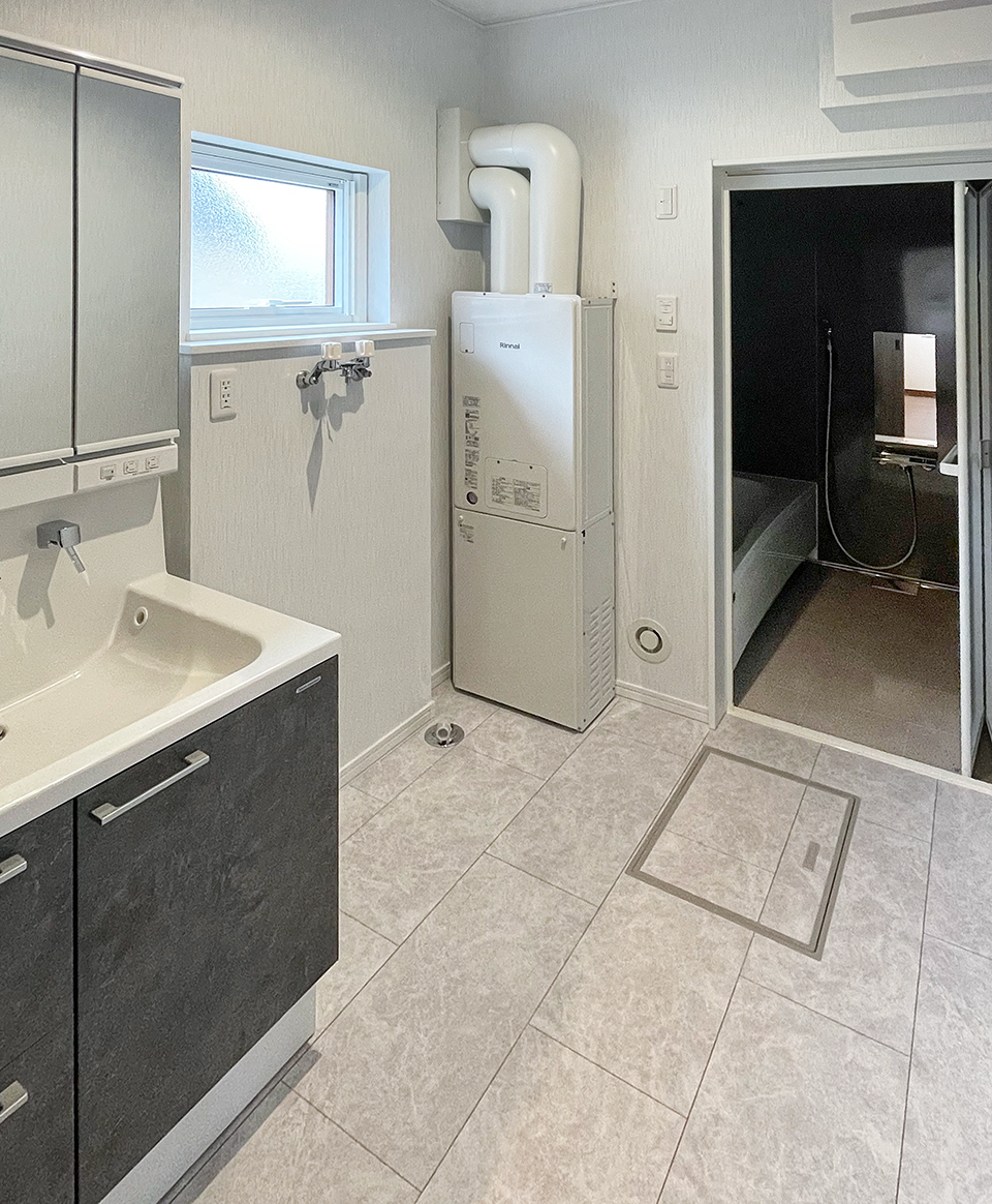 水回りもゆとりある広さを確保しました。洗面脱衣室は、身支度や洗濯がスムーズに行えるよう動線を整理しています。