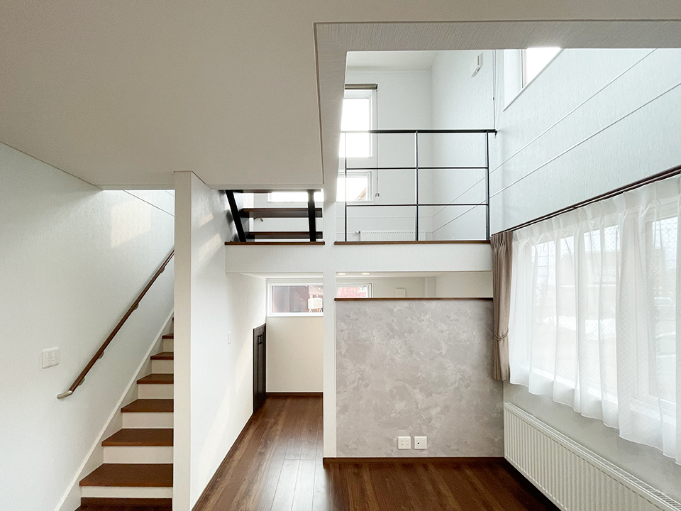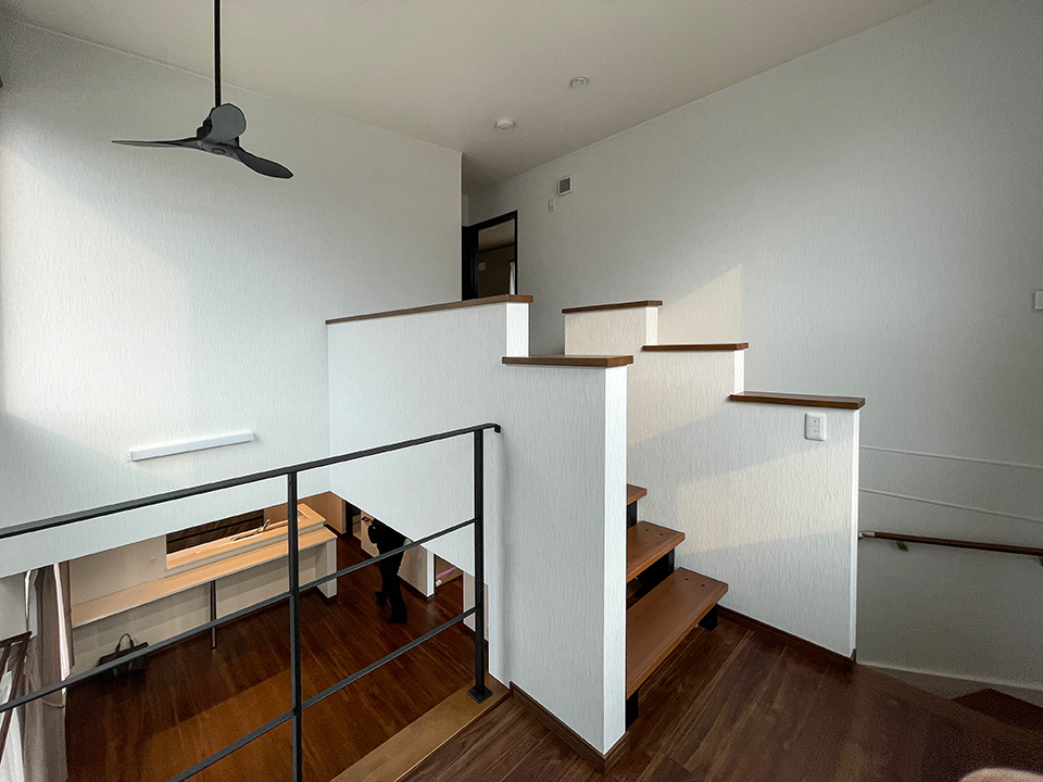 ▲スキップフロアから見下ろす景色。この「視線の変化」が、日々の暮らしにちょっとしたワクワクを与えてくれます。