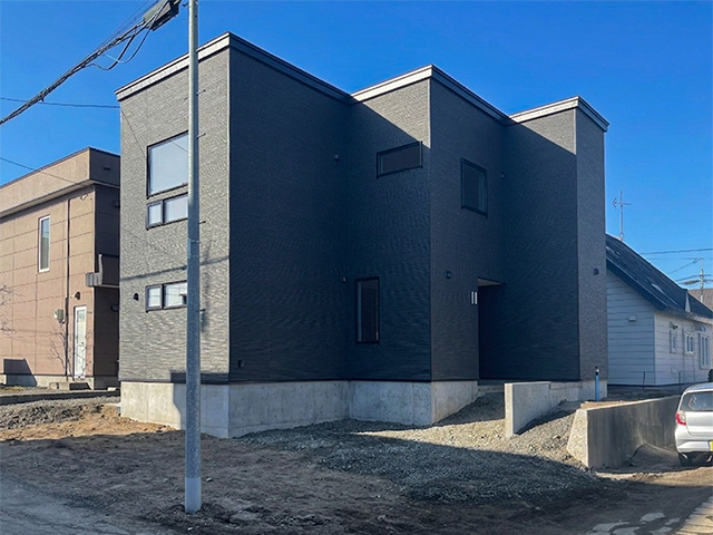 ▲落ち着いた黒の外壁が、青空に美しく映えます。