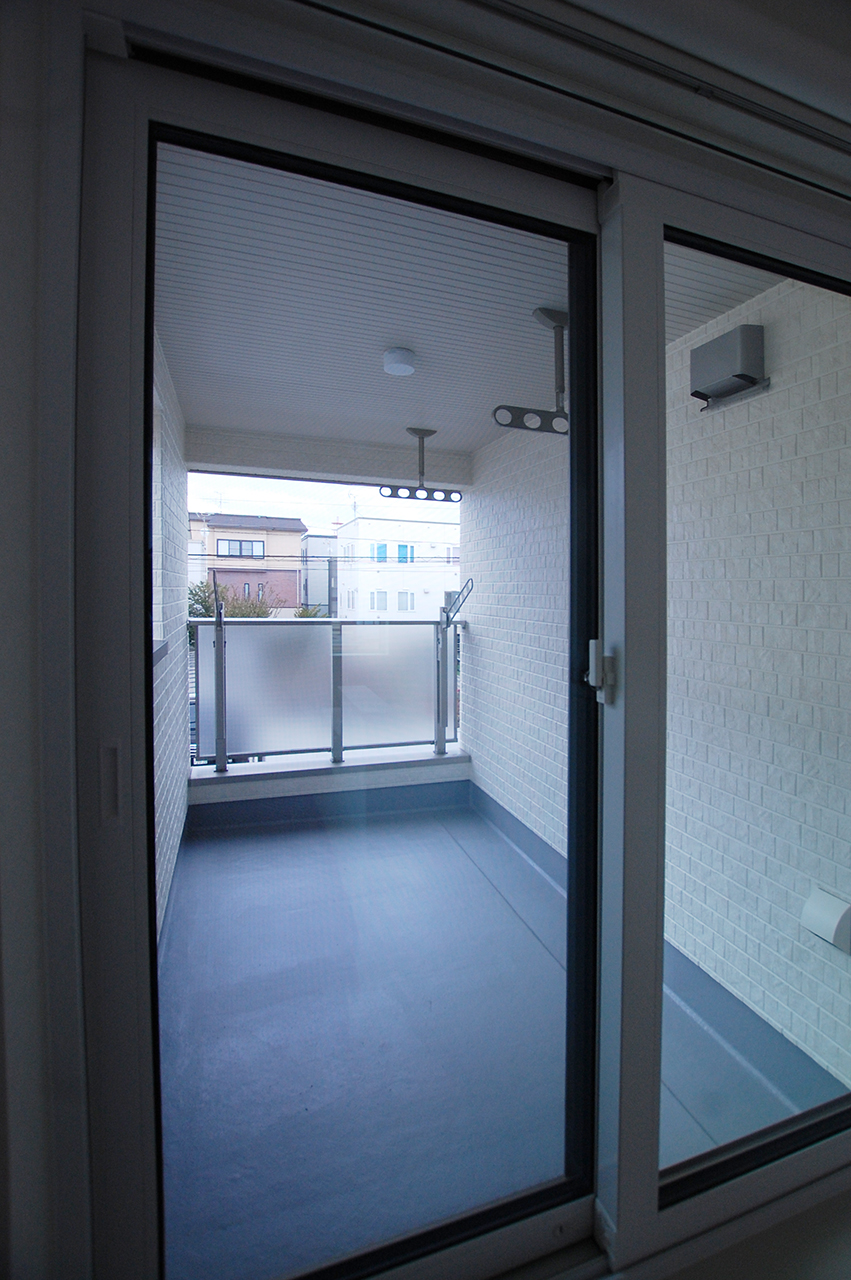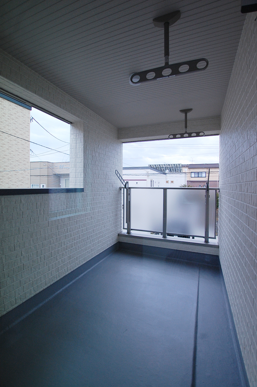 屋根と壁に囲まれた、半屋外のようなバルコニーです。