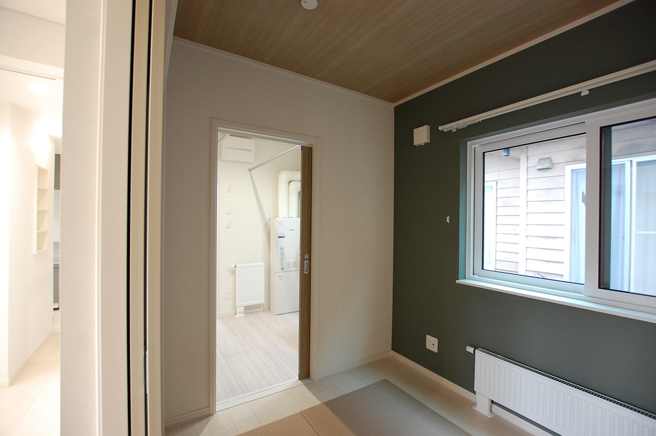 落ち着いた色合いの畳コーナーは、来客時の寝室としても、自分時間を楽しむスペースにもぴったりです。