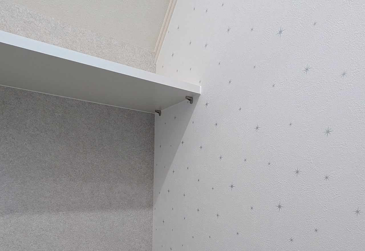 壁にはシルバーの星柄クロス(SP2595)と落ち着いたグレー(SP2563)をコーディネート。
