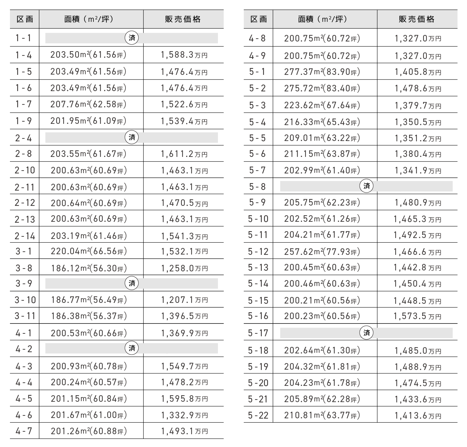 <販売価格表>