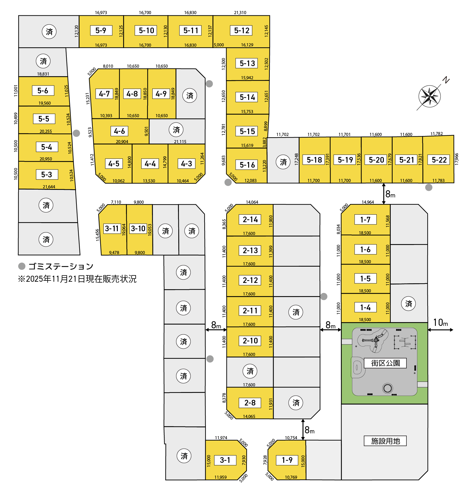 設定位置は固定され、ブロック塀は引き渡し後より所有者に帰属します。ゴミステーションは班分けされた居住者のみが利用し、輪番制等により清掃、除雪、美化に努めるものとする。