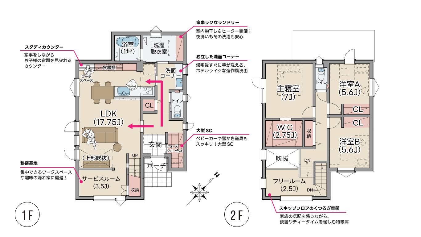 スキップフロアの下は、多目的に使えるフリースペース。お子様の遊び場やご主人の書斎など、趣味の空間として活用できます。